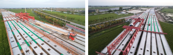 宁盐高速扬州段共11个路基桥涵施工标段,目前已有3个标段完成架梁施工。各标段架梁施工完成后,将开展护栏安装、伸缩缝设置及桥面铺装等桥面系施工。